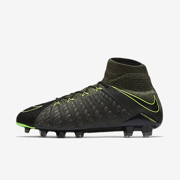Detalles del productoPiel Tech Craft La piel premium texturizada con precisión ofrece un toque del balón uniforme.El diseño cuenta con unos cables ultraligeros y ultrarresistentes que envuelven el mediopié y se integran con los cordones para proporcionar una mayor estabilidad durante los movimientos laterales.Dynamic Fit Collar La zona del tobillo de punto se adapta anatómicamente a la forma del tobillo para ofrecer la sensación de llevar puesto un calcetín.Las Ventajas del productoDiseñadas para los delanteros más agresivos, las botas de futbol para terreno firme Nike Hypervenom Phantom 3 DF Tech Craft para hombre están diseñadas para aumentar la velocidad de los tiros y permitir unos cambios de dirección más rápidos en campos de hierba corta.