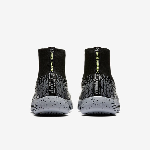 Detalles del productoRepelente al agua La parte superior Flyknit de media altura ofrece un ajuste ceñido como una segunda piel con un recubrimiento repelente al agua que ayuda a mantenerte seca kilómetro tras kilómetro durante las carreras de invierno.Sensación fluida La suave mediasuela de Lunarlon perfilada presenta precisos cortes realizados con láser que se contraen al pisar, proporcionando así una transición gradual del talón a la puntera.Tracción actualizadaLa suela exterior de presión localizada cuenta con almohadillas de Lunarlon en áreas clave que ofrecen una amortiguación específica, al tiempo que el patrón gráfico de tracción actualizado ayuda a mejorar el agarre en superficies húmedas.Las Ventajas del productoPISADA SIN ESFUERZO. Las zapatillas de running Nike LunarEpic Flyknit Shield para mujer ofrecen una pisada suave y un ajuste como una segunda piel con un tejido Flyknit repelente al agua y un patrón gráfico de tracción actualizado para impedir que las condiciones meteorológicas te detengan.